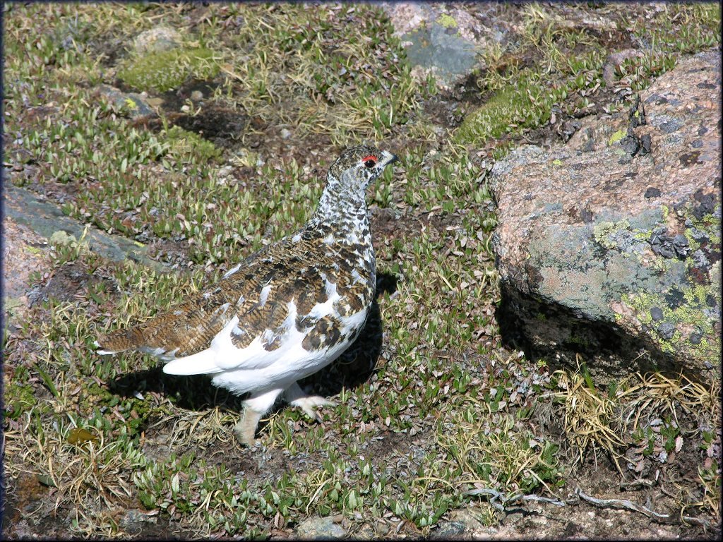 Result: The bird in the image appears to be a ptarmigan. This species is known for its plumage which changes with the seasons. In the winter, ptarmigan birds have white feathers to blend in with the snowy environment, while in the summer, their feathers change to a more brown or gray color to blend in with the rocky and grassy terrain. The bird shown in the image has white feathers, suggesting it is in a winter camouflage mode. Ptarmigans are often found in arctic and alpine regions and are well-adapted to cold environments.